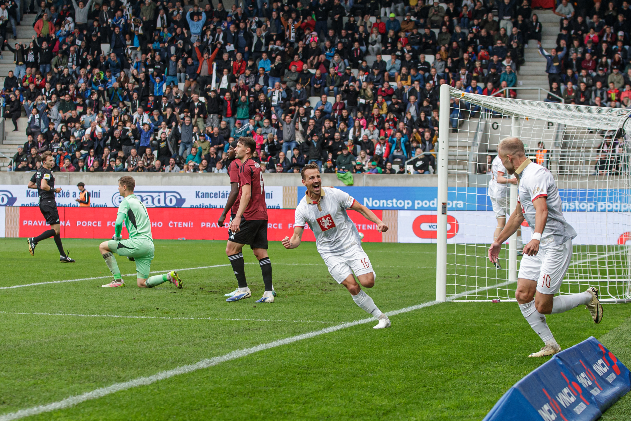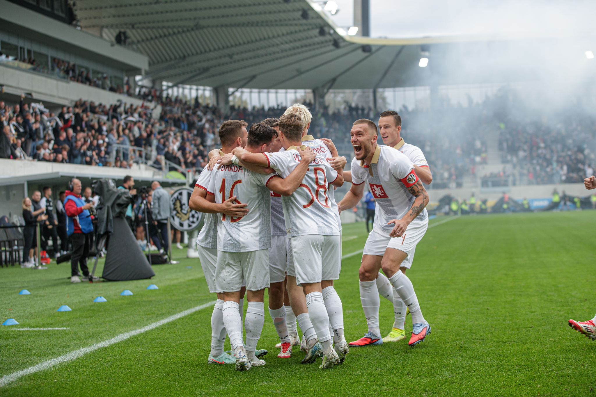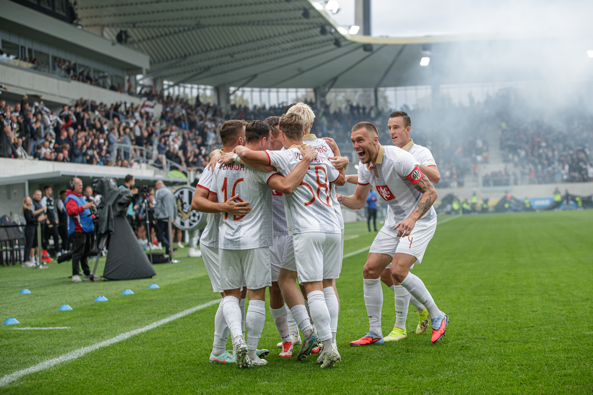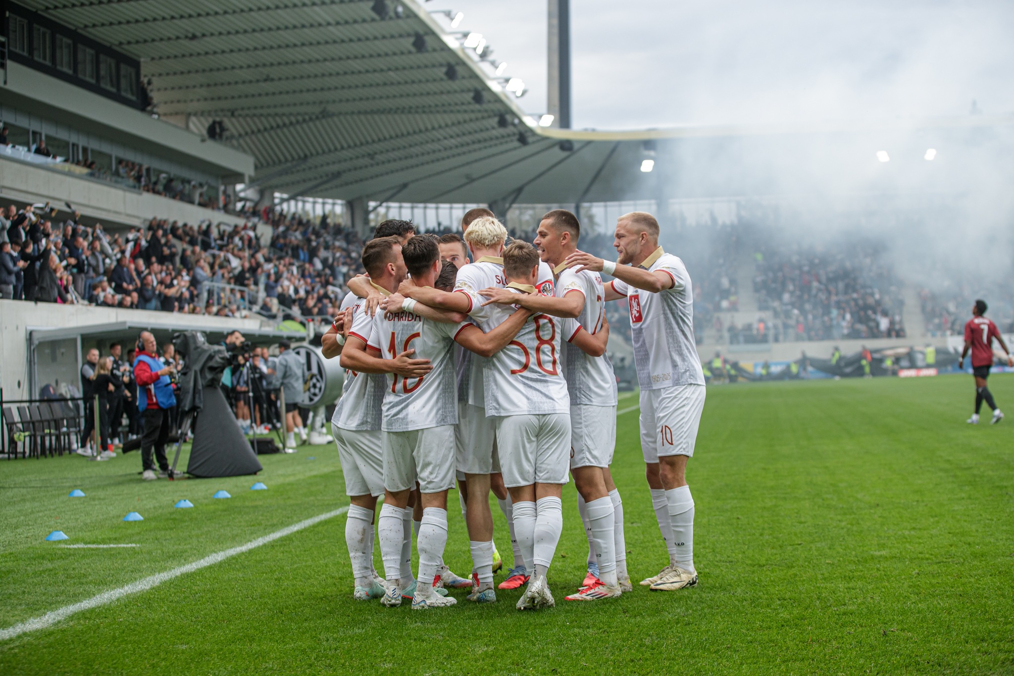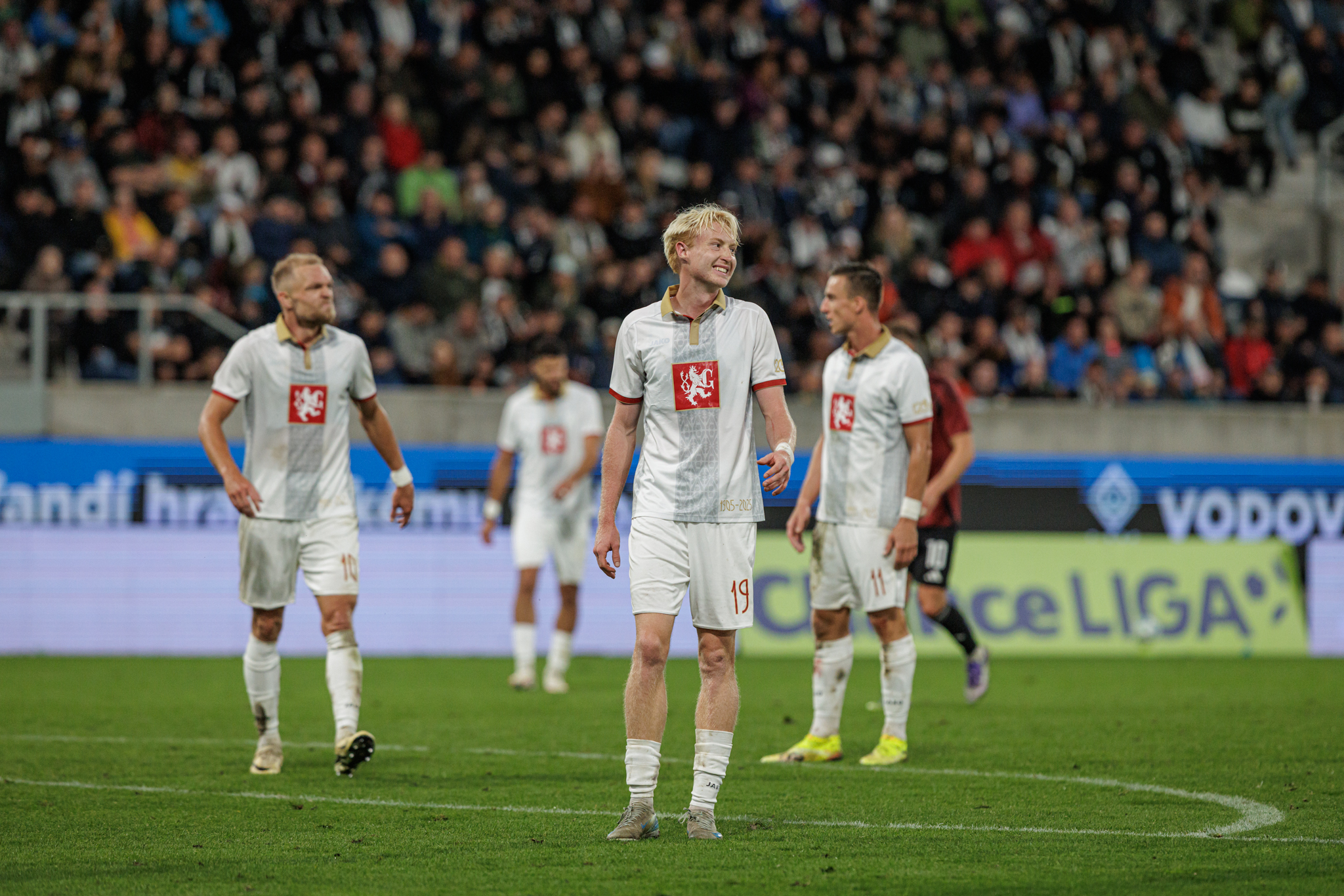 Pražané sice rychle snížili, domácí ale i nadále působili sebevědomě a organizovaně. Ve druhém poločase čelil Hradec silnému tlaku soupeře, oporou týmu byl skvěle chytající brankář Zadražil, jenž několika zákroky udržel těsné vedení. Po závěrečném hvizdu tak mohla Malšovická aréna explodovat radostí – výroční zápas se proměnil ve zlatou kapitolu klubové historie a první ligová porážka Sparty v sezóně byla na světě.